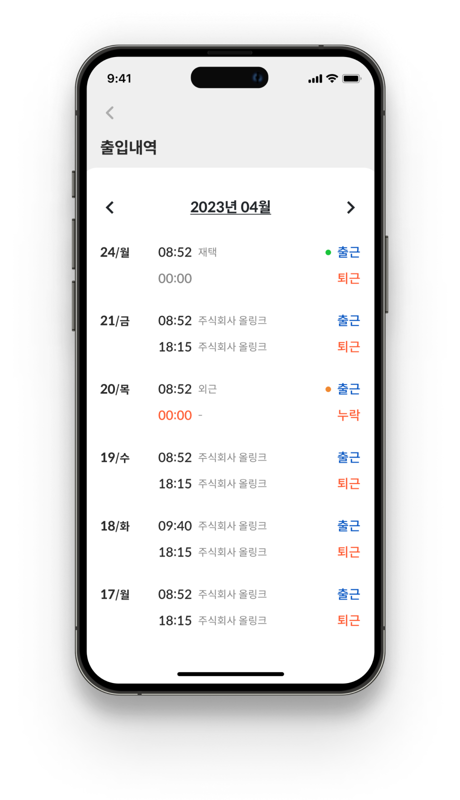 출퇴근 기록 관리