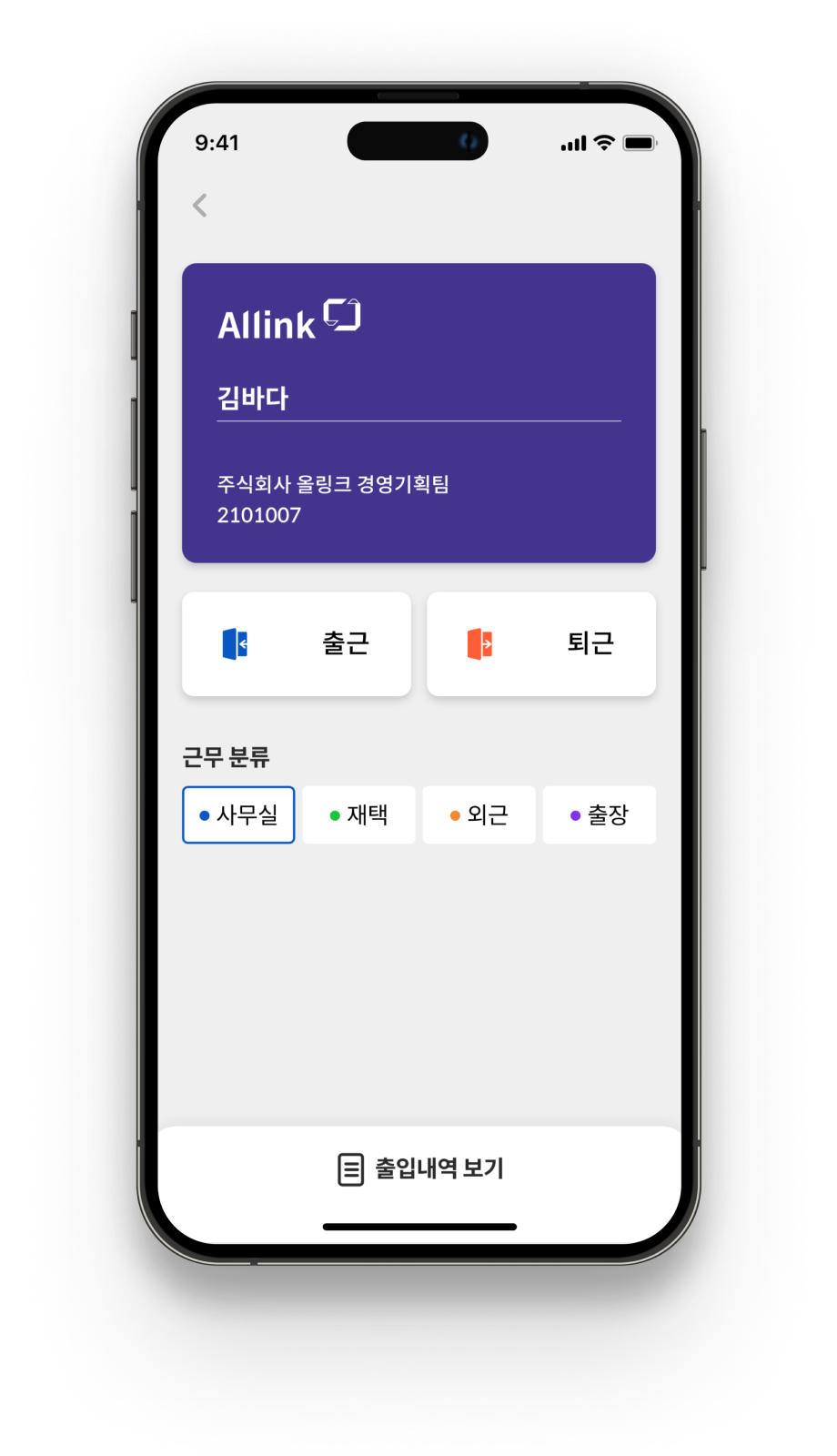 실물 카드없이 내 휴대폰으로 빠르고 정확하게 출근체크하세요